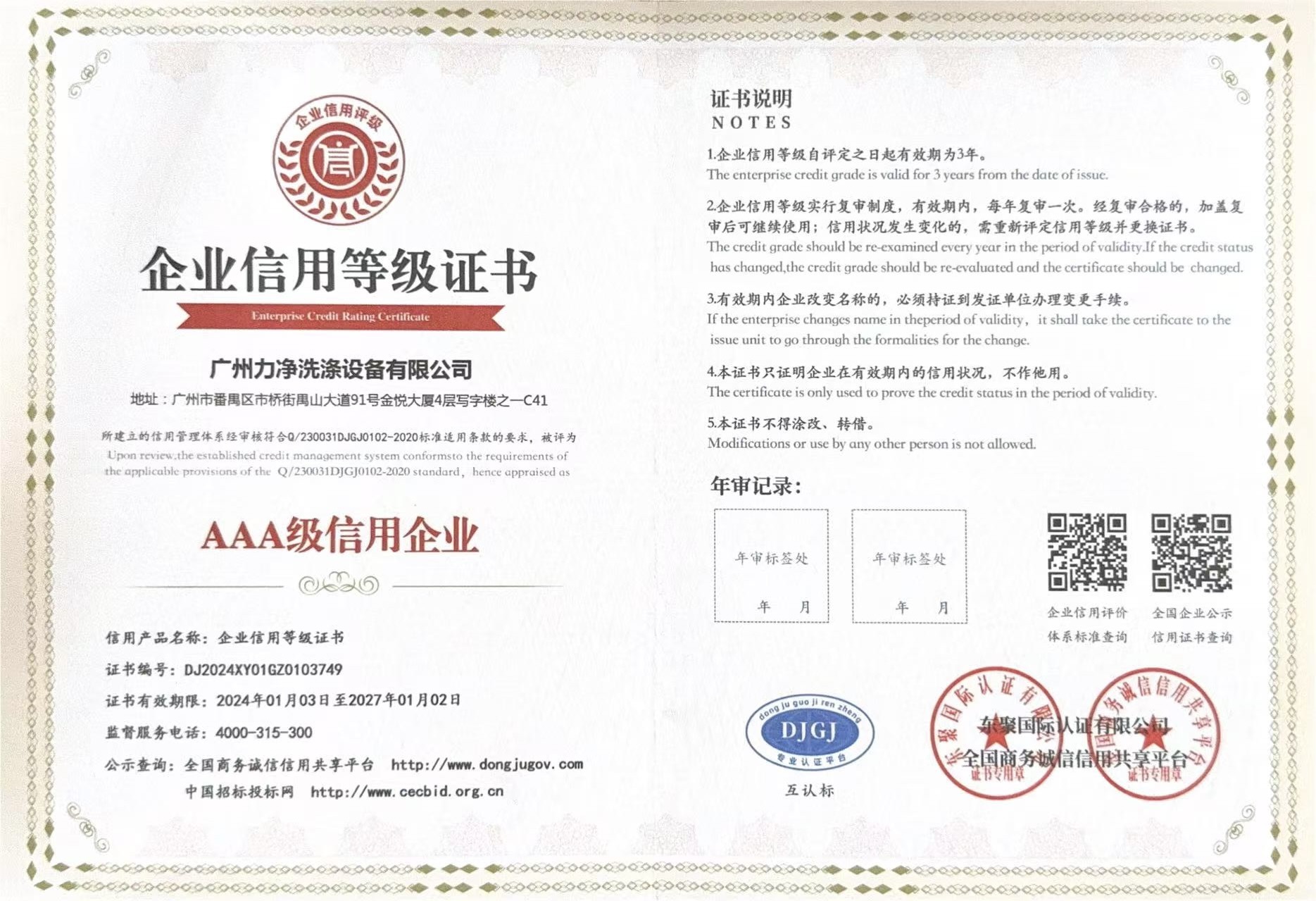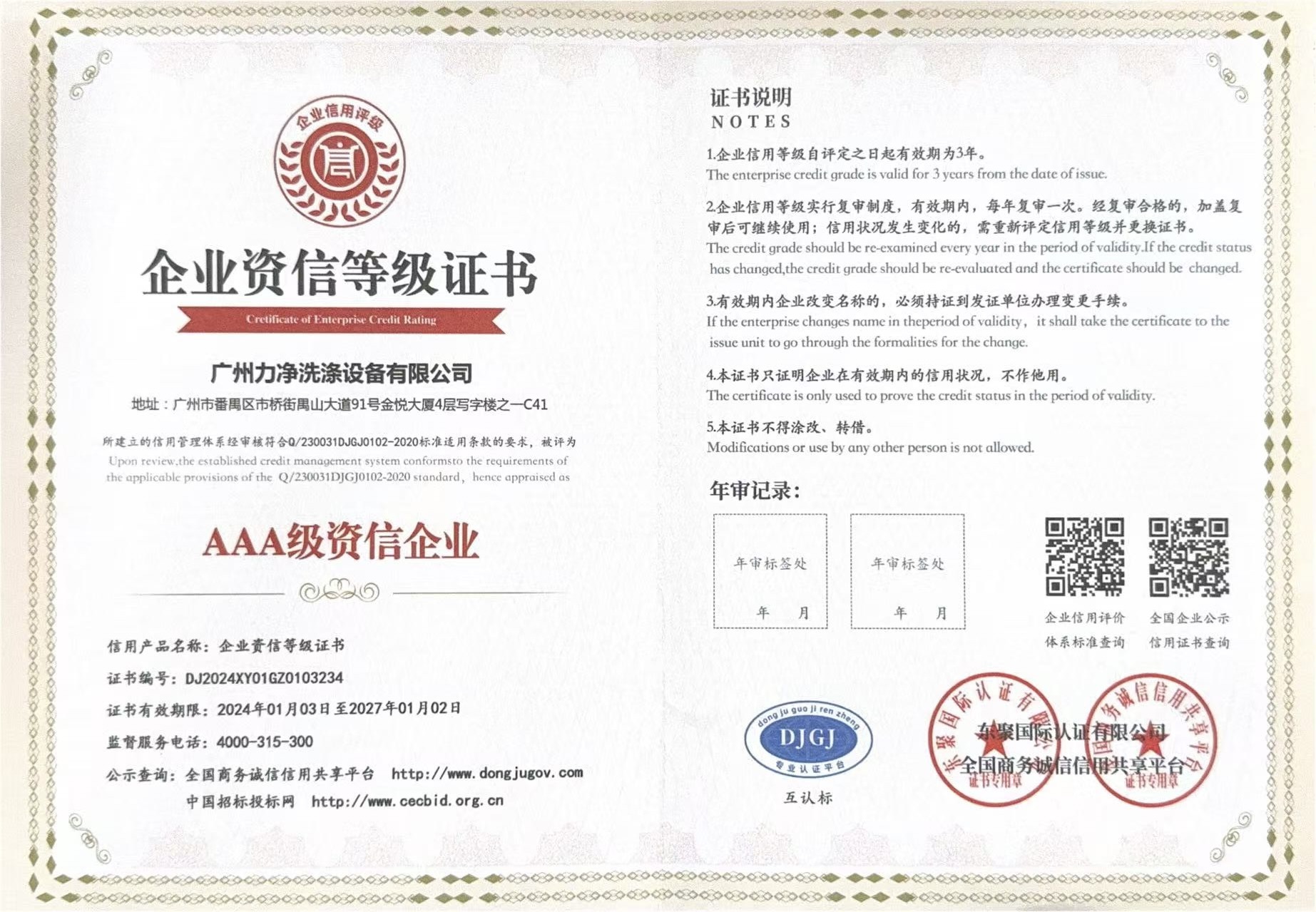 AAA級重合同守信用企業 AAA級重質量守信用單位 AAA級誠信經營示范單位 AAA企業信用等級證書
